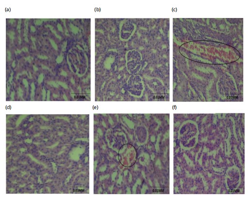 Histology of the kidney: Haematoxylin and Eosin (H and E) staining was used on the kidney tissue slices that were made from paraffin-embedded blocks25. A digital light microscope was then used to analysis and take pictures of the dyed heart tissue slices at various magnification settings.