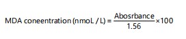 Determination of lipid peroxidation (malondialdehyde) level: Lipid peroxidation was determined by measuring spectrophotometrically the level of the lipid peroxidation product, Malondialdehyde (MDA), as described by Wallin et al.13. Briefly, 0.1 mL of the serum was mixed with 0.9 mL of distilled water in a tube. About 0.5 mL of 25% Trichloroacetic Scid (TCA) and 0.5 mL of 1% thiobarbituric acid (TBA) in 0.3% NaOH were also added to the mixture. The mixture was boiled for 40 min in a water bath and then cooled in cold water. Then 0.1 mL of 20% sodium dodecyl sulfate (SDS) was also added to the cooled solution and mixed properly. Thereafter, the absorbance was measured at the wavelengths of 532 and 600 nm against a blank: