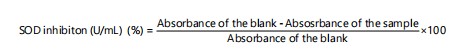 The changing rate of absorbance was used to determine superoxide dismutase activity using this equation: