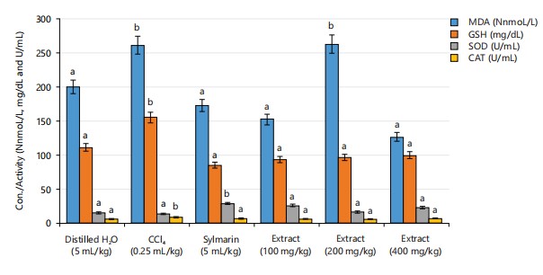 The extract was administered to the animals orally. The rats were sacrificed on the seventh day of the experiment. Blood samples were collected in heparinized bottles for antioxidant analysis |