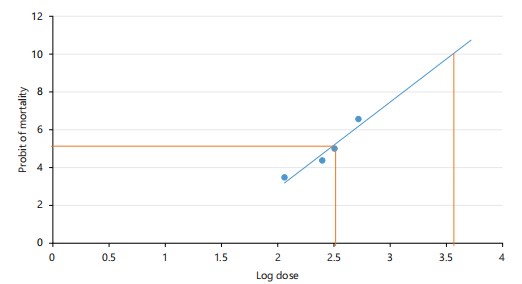 Log dose | No of death/ No of rats used |